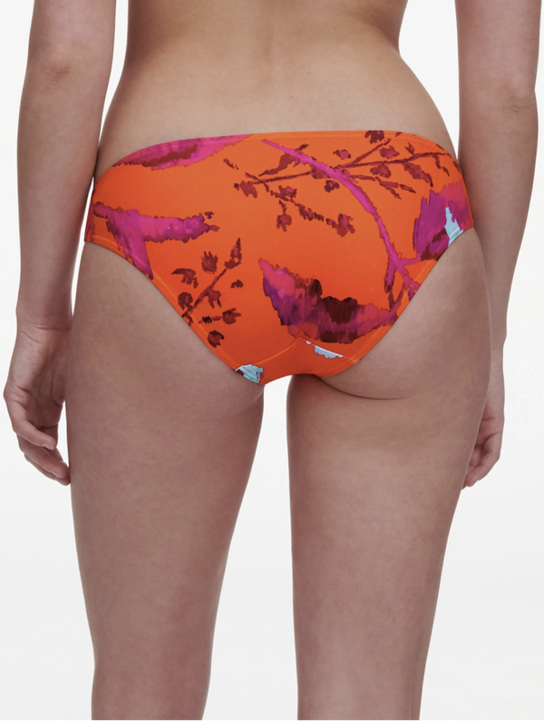 De Icon lijn van Chantelle bestaat uit de klassieke en geliefde stijlen van het Chantelle merk. De felle contrasterende bloemenprint zorgt voor een fashion statement. Modieus en kleurrijk! Het bikinibroekje bevat een tailleband waar een mooie gouden accessoire aan is gevoegd. De combinatie van een levendige oranje basiskleur en een opvallende paarse bloemenprint zorgt voor een trendy en zomerse uitstraling. Maak de look af door hem te stylen met een van de bikinitops uit de Icon lijn. Keep it simple! Met deze print maak jij al een statement!