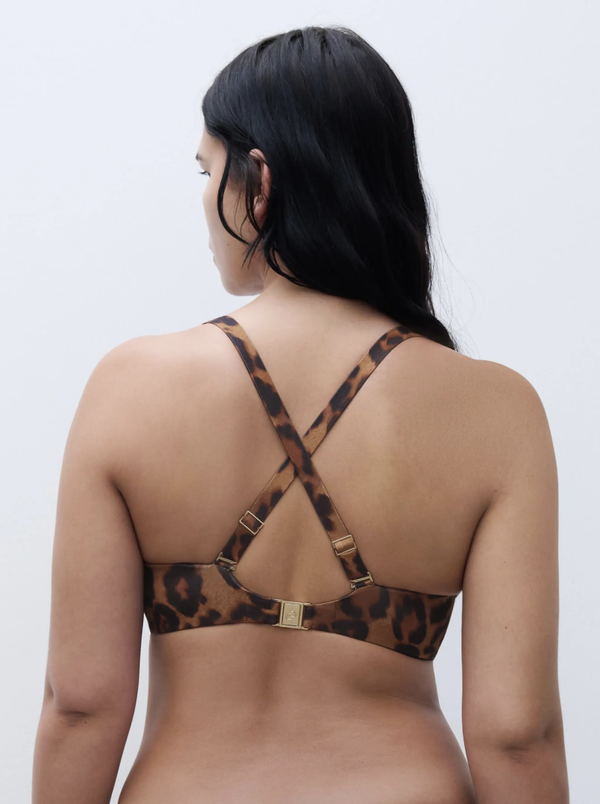 De Sauvage lijn van het merk Chantelle is een high fashion lijn. Maak een stijlstatement met deze elegant niet voorgevormde bikini top, uitgevoerd in een opvallende luipaardprint. De comfortabele pasvorm is ook uitermate geschikt voor grote cupmaten. De onzichtbare beugels bieden de perfecte ondersteuning. De subtiele goudkleurige logo-accenten op de bandjes voegen een vleugje luxe toe, perfect voor een trendy en zelfverzekerde strandlook. Maak je look af met een van de bijpassende bikinibroekjes uit de lijn!
